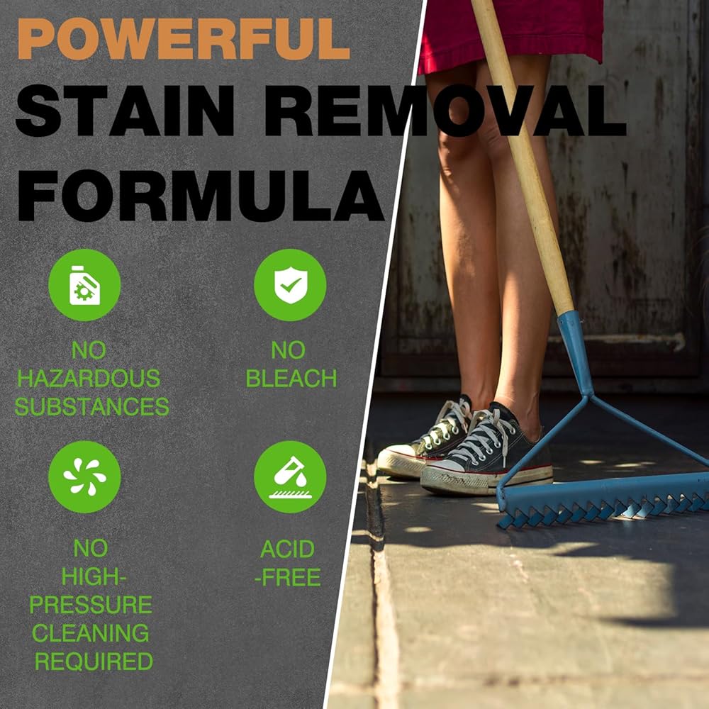 POWERFUL OIL STAIN REMOVAL FORMULA: Waterless concrete cleaner uses a deep penetration formula to effectively remove oil stains from porous surfaces. This product is highly effective on common oily or petroleum-based stains found on concrete and paved driveways, garage floors, parking lots, and drive-through lanes.
