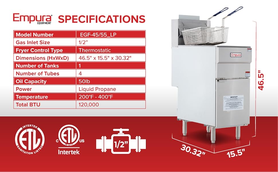 COMPACT DESIGN: Measuring 39.36"H x 15.5"W x 30.32"D, this freestanding fryer is designed to maximize kitchen space efficiency. Its compact footprint is perfect for kitchens with limited space, while still delivering the high performance and output necessary to meet the demands of fast-paced restaurant operations.