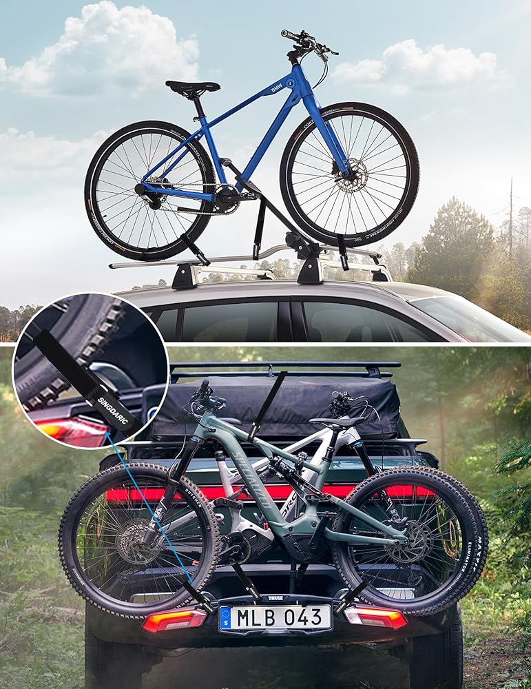 【Size and Applications】-These bike rack straps adjustable design are mostly used to secure bikes during transportation or storage, effectively stabilizing and preventing bike wheels from spinning. SINGDARIC straps are 26", suitable for most bikes, an excellent choice for cycling accessories and mountain bike accessories.