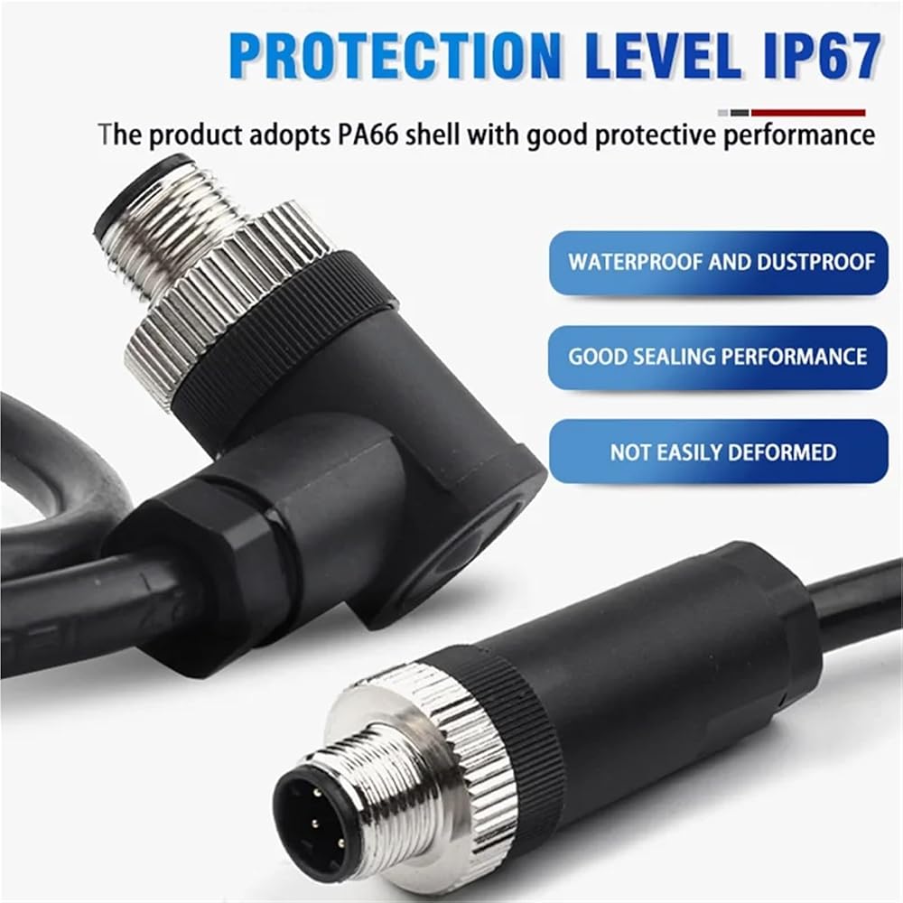 1Pcs M12-PG7 PG9 Socket Connector 3 4 5 8 Pin Straight Bent Male Female Screw Threaded Coupling(PG9 Male Bent,8 Pin)