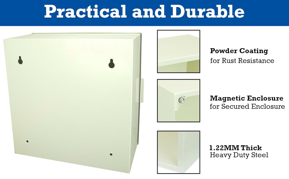 DURABLE & STURDY: Made from 1.22mm thick durable steel, Levida AED cabinet features a powder-coated finish that that effectively resists corrosion. This design ensures sturdiness and durability, making it suitable for long-term use in high-traffic areas.