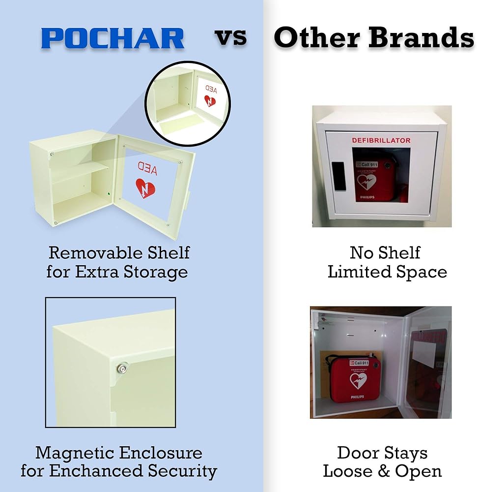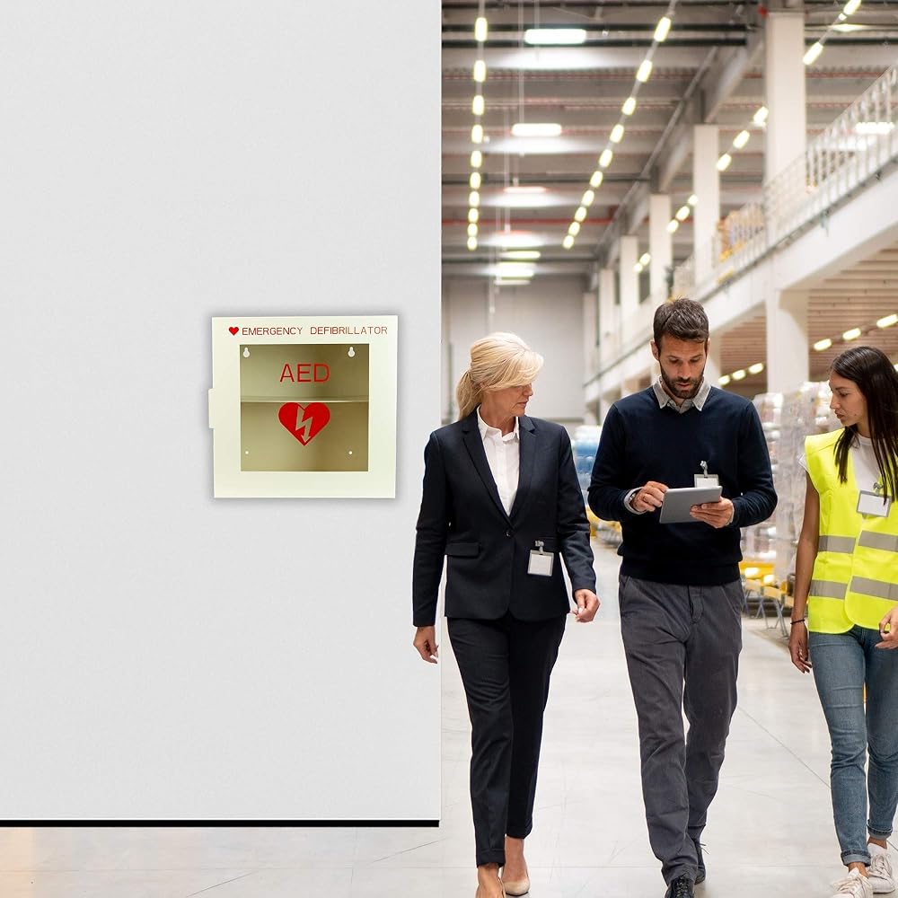 WALL MOUNT AED CABINET: Our steel defibrillator storage case provided 4 pre-drilling holes on the back and necessary hardwares for wall-mounted installation. It is an indispensable addition to home, offices, schools, hotels, hospitals, restaurants, subways, warehouses, social clubs and public places.