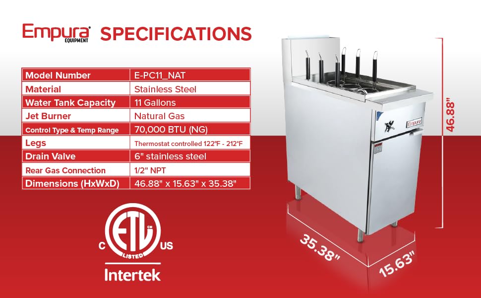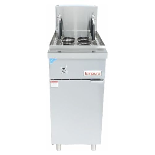 EMPURA Freestanding Natural Gas Pasta Cooker | Heavy-Duty Noodle Cooking Range with Thermostat Control for Restaurant Buffet | 11 Gallon Tank Capacity | 15.63"W x 35.38"D x 46.88"H, Stainless Steel