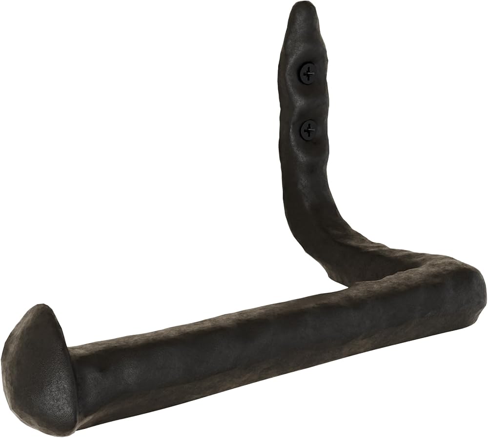 Unique Cast Iron Toilet Paper Holder with Hammered Finish: Embrace the perfection in the flaws of this toilet paper holder. Each one of our toilet paper holders is delicately handled to get a hammered texture. This pattern makes each piece unique and provides an upscale appearance while adding timeless style and quality. Add the perfect touch to your space with this railroad spike-design toilet paper holder.