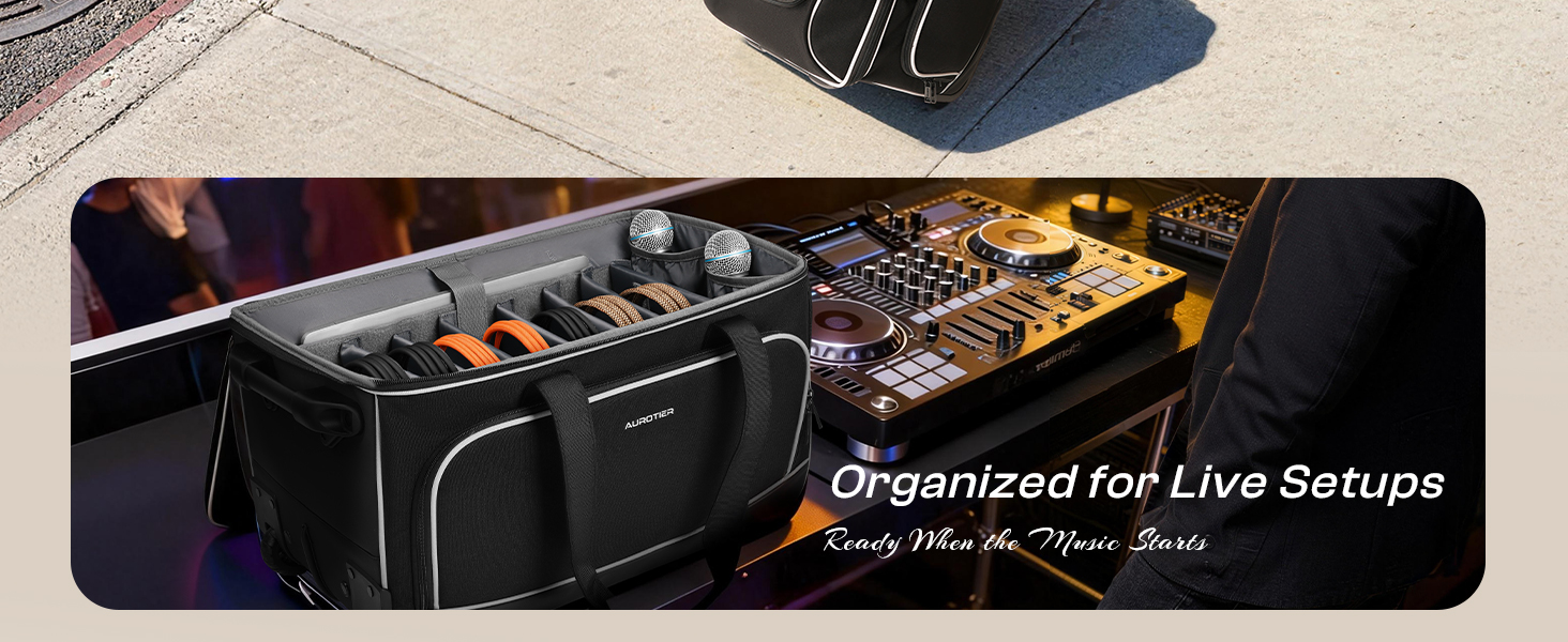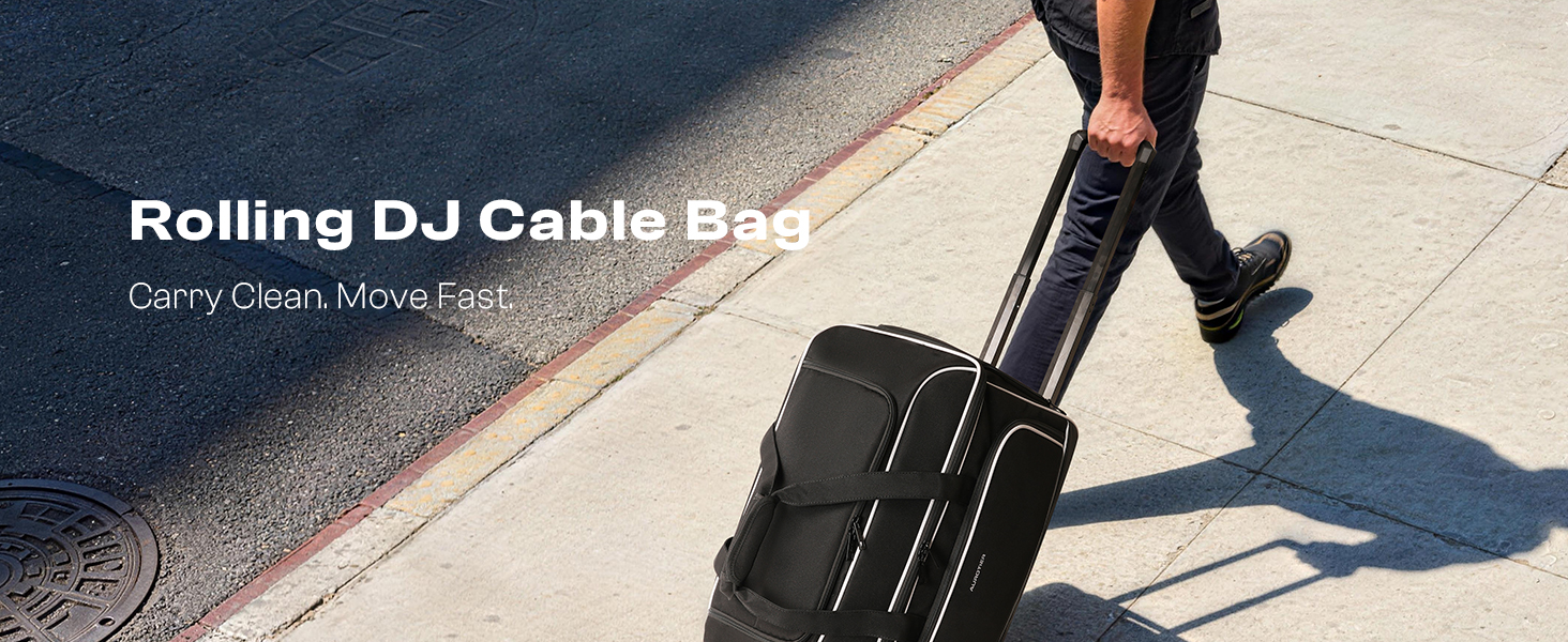 【2-in-1 Carry Options for Any Event】 This 2-in-1 roller cable organizer bag offers versatile carrying options, allowing to roll it smoothly with the wheels and telescopic handle or lift it using the padded top handle. Designed for people who regularly transport cables and equipment, it's ideal for clubs, bars, weddings, outdoor events, and touring—delivering organized storage and reliable mobility in any setting