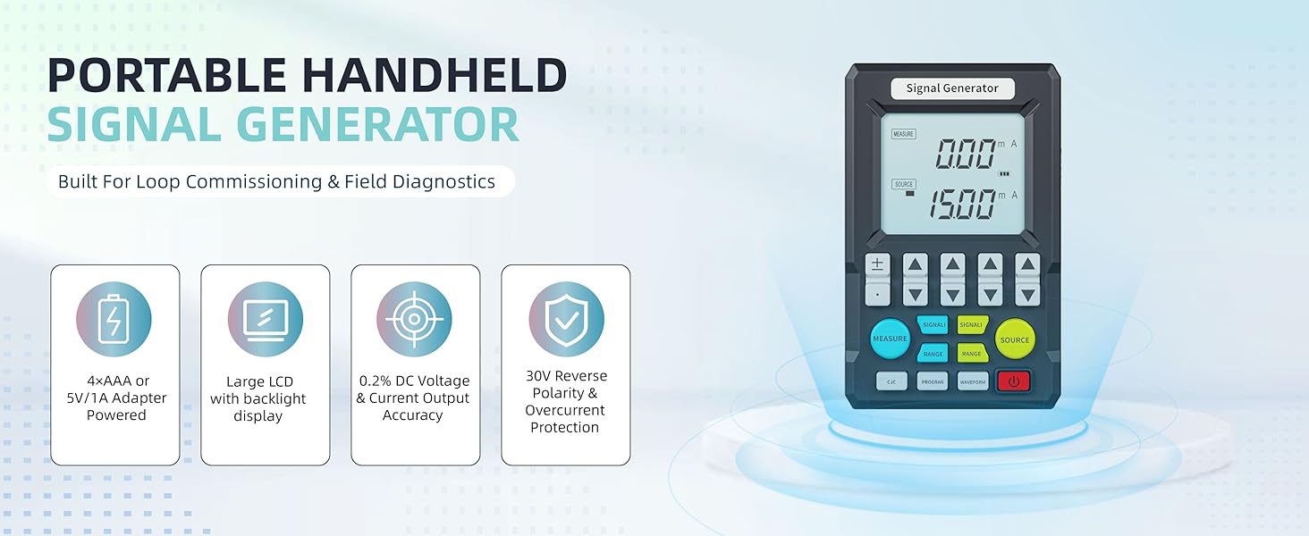 【4–20mA Signal Generator】High-precision industrial signal generator and process calibrator supports voltage signal output (0–30V / 0–24mV / 0–100mV),active & passive current loop calibration (0–24mA / 4–20mA),and thermocouple calibrator with 8 TC types (K/E/J/T, etc.).eliminates range conversion,One-stop solution for PLC debugging,industrial sensor calibration,transmitter testing&other multi-scenario needs.