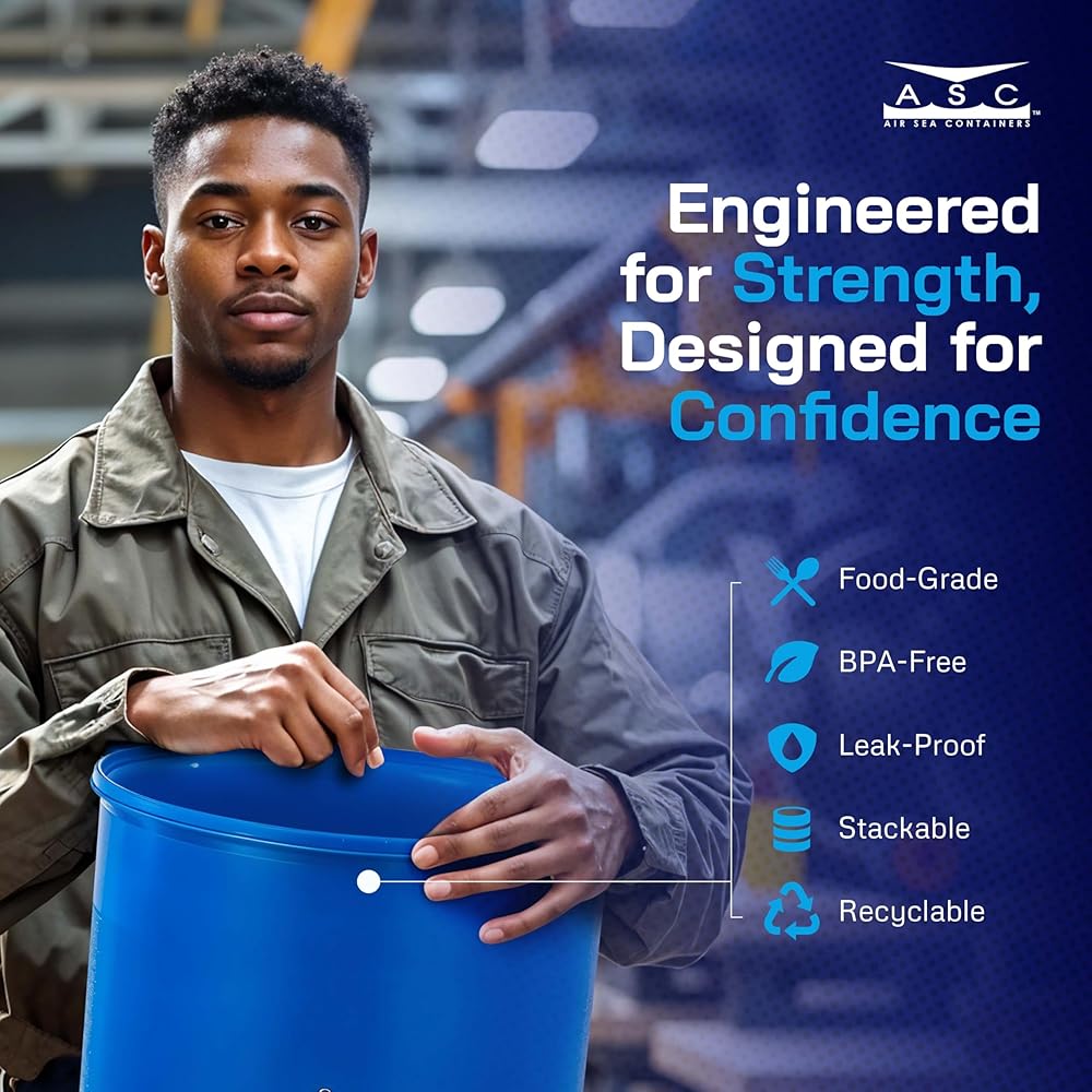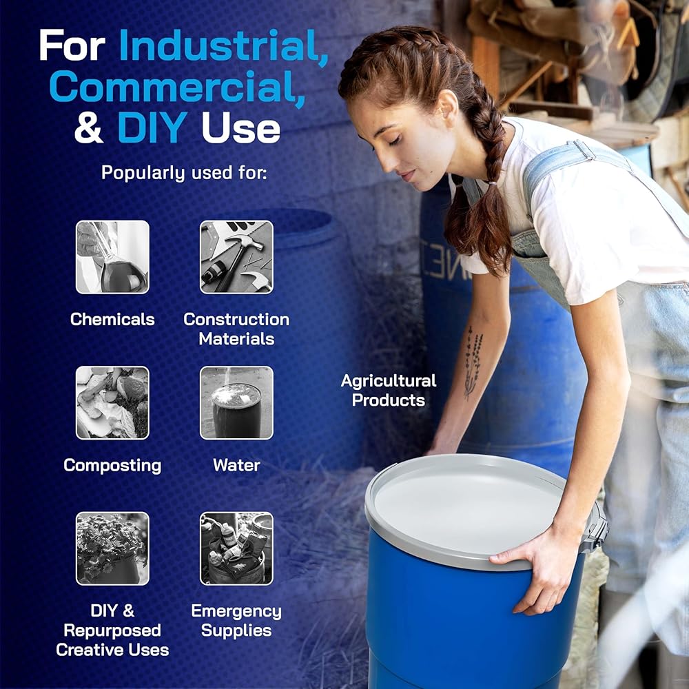 Since 1991, Air Sea Containers has been a trusted name in regulatory-compliant packaging, offering durable, high-performance solutions for all your storage and transportation needs. Crafted from premium high-density polyethylene, this plastic barrel with lid are built to withstand challenging industrial environments stressors like UV exposure and moisture. Perfect for industrial, commercial, or DIY applications, this versatile plastic drum delivers superior performance and reliability. Great as industrial-grade waste containers, food grade storage with lids, or as plastic storage buckets with lids, these containers are designed to meet a variety of needs across different industries and applications.
