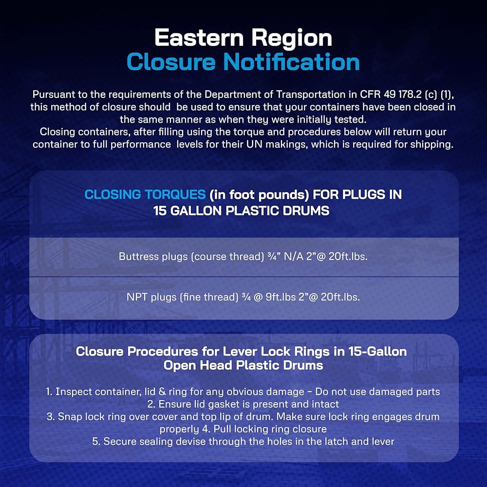 15 Gallon Open-Head UN Rated Poly Drum with Ring Lock Lid