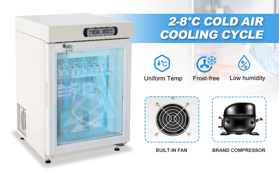 Insulated Anti-Condensation Door – This insulated refrigerator is the ideal medical grade fridge because it's fitted with a built-in air duct to save space, condensation resistant door to eliminate moisture, and clear glass door