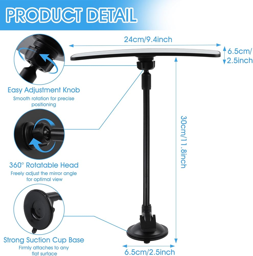 Key Features360° ROTATABLE WIDE-ANGLE VIEW: Keep an eye on your surroundings with a distortion-free convex acrylic mirror. Perfect for office cubicles, home desks, or vehicles, it offers a wide rear view so you can see behind you without turning your head. The flexible gooseneck arm allows easy angle adjustment for the best visibility.