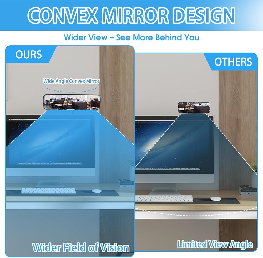 Cubicle Mirror to See Behind You – Adjustable Monitor Rear View Mirror for Office Desk, Personal Security & Privacy, Fits PC Monitors or Cubicle WallsStay aware of your surroundings at all times. This adjustable rear-view mirror helps you monitor activity behind you for improved privacy, focus, and safety at work or home. Designed with a 360° rotatable arm and a clear convex acrylic lens, it provides a distortion-free view that fits perfectly on any cubicle wall, monitor, or flat surface.
