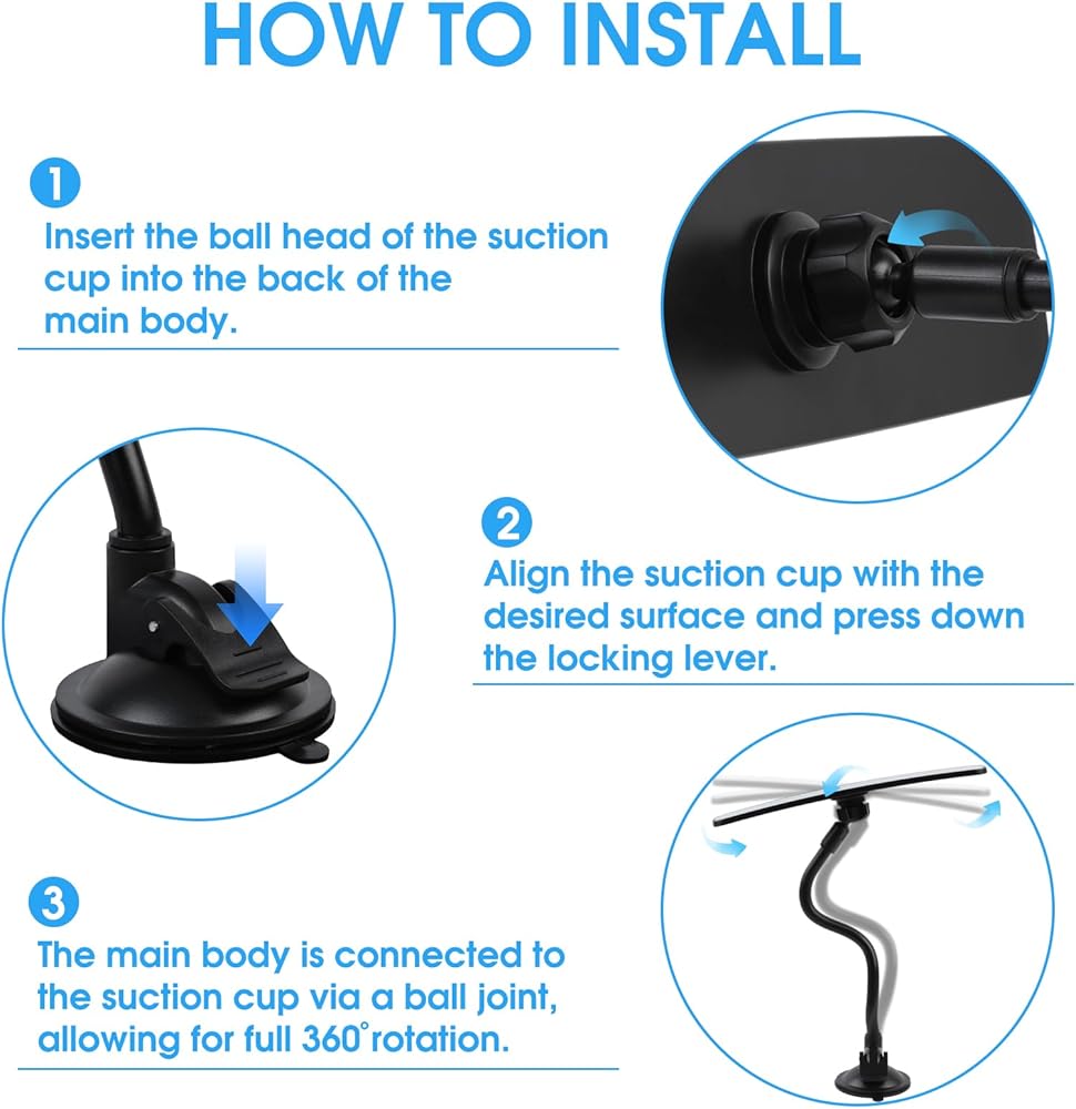 COMPLETE KIT & EASY SETUP: Includes everything you need for quick installation—just insert the ball head, press the suction cup in place, and adjust the arm. No drilling, screws, or adhesives required.