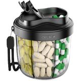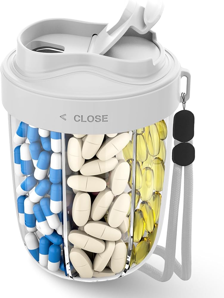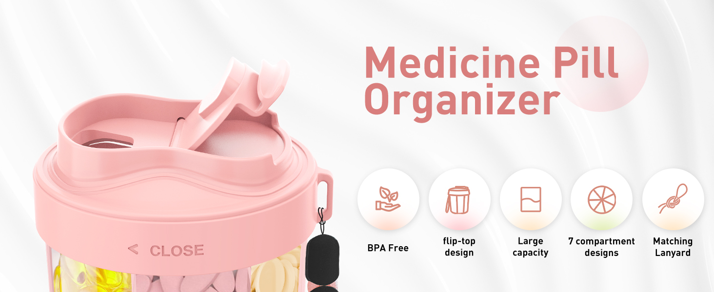 EASY TO ACCESS PILLS: This cute pill organizer features three thoughtful designs,a safety catch to ensure that supplements are sealed and not spilled, a flexible swivel lid with a wide opening to make loading and removing medication easier and more efficient, and a transparent visual compartment that lets you see the amount of medication at a glance, supplement organizer helping you to efficiently manage your healthy life.