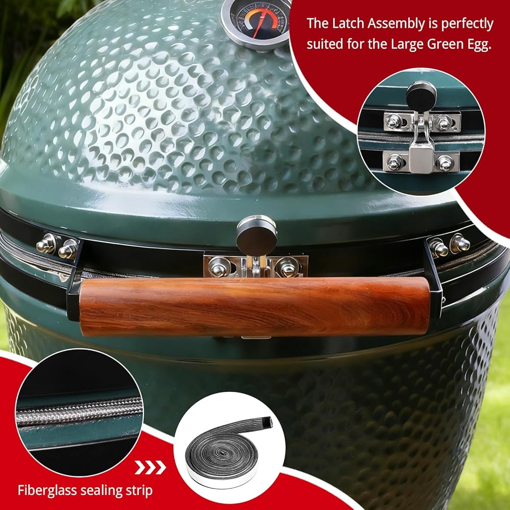 Vankey Latch Assembly for Large Big Size Green Egg, Zinc Alloy Hinge Band Latch Assembly Replacement Parts to Improve Seal, Compatible with Fiberglass Gasket, One-Handed Operation