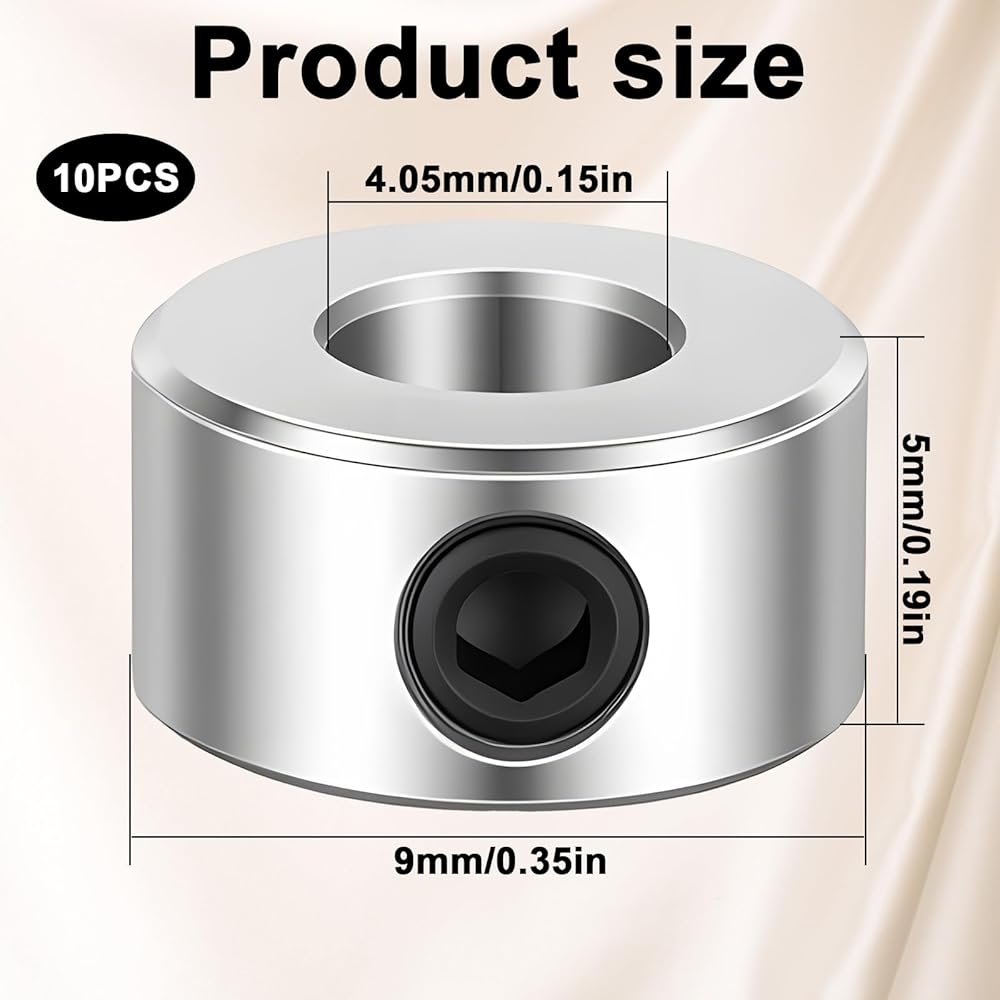 • Size: 4.05mm shaft collars with set screw, 9mm outside diameter, 5mm thickness