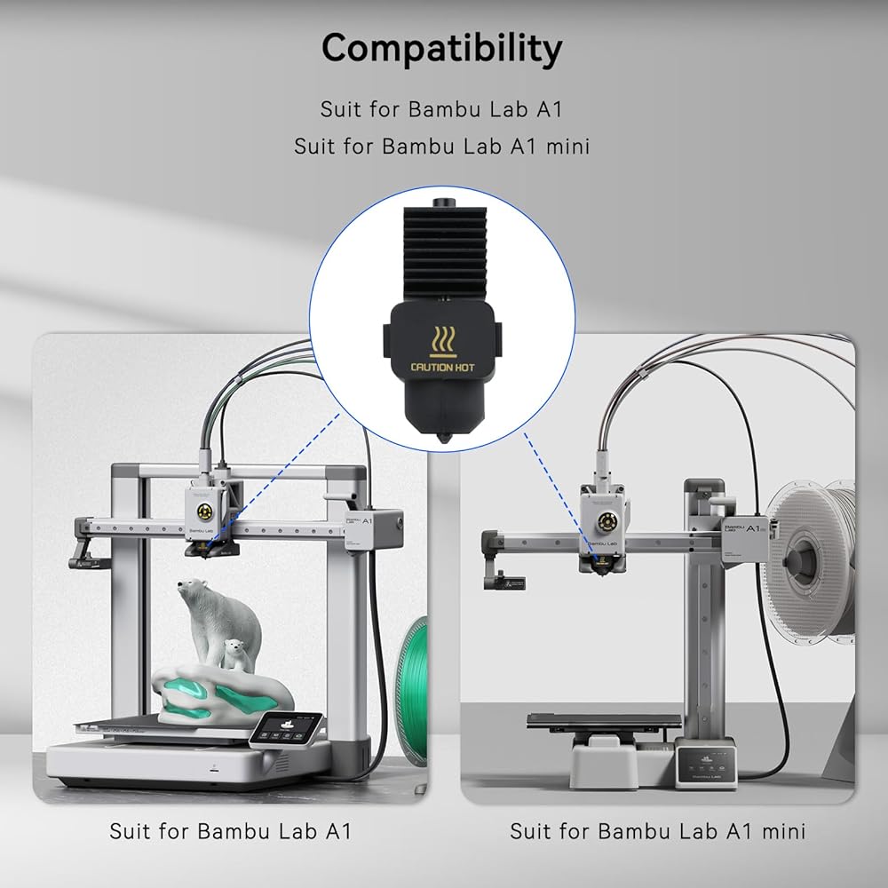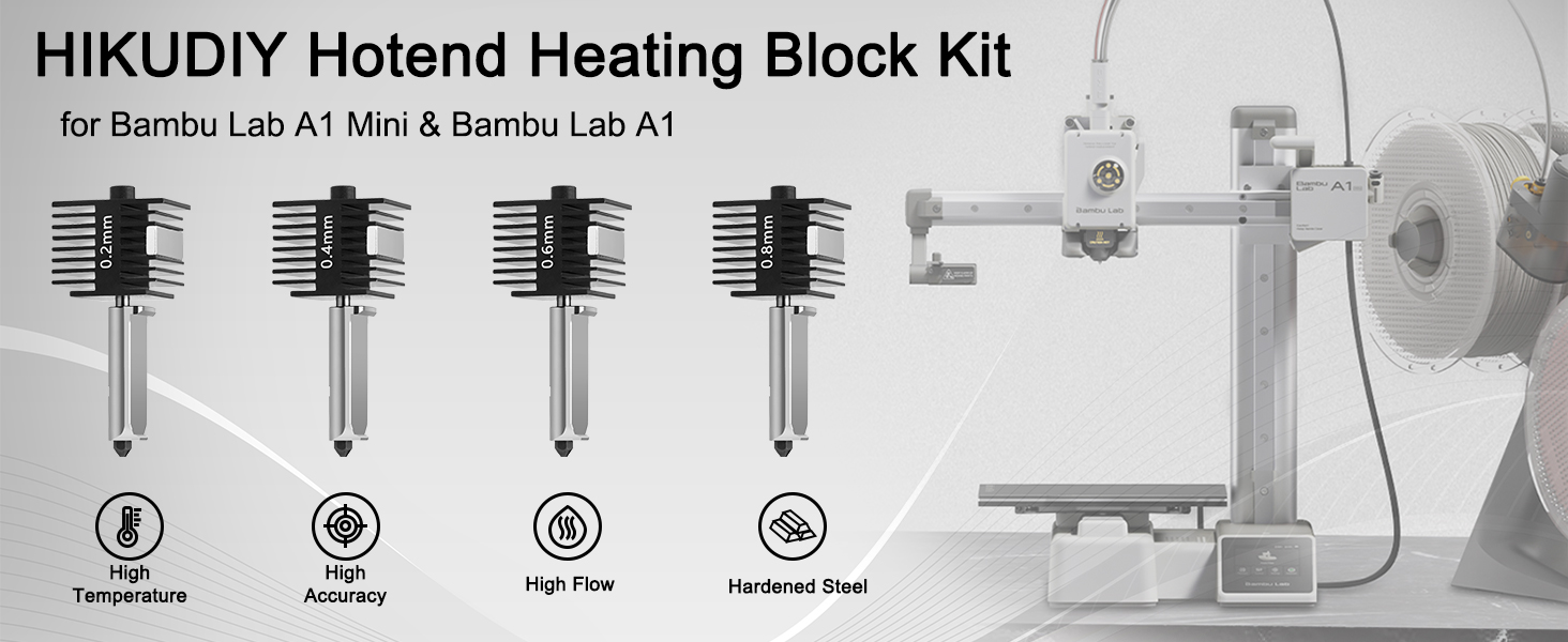 Exclusively Compatible 4-Piece Bundle – Designed specifically for Bambu Lab A1/A1 Mini 3D printers, this kit includes 4 hotend units with 0.2/0.4/0.6/0.8mm hardened steel nozzles. Perfect for switching between high-detail (0.2mm) and fast-printing (0.8mm) needs—no need to buy replacements separately.