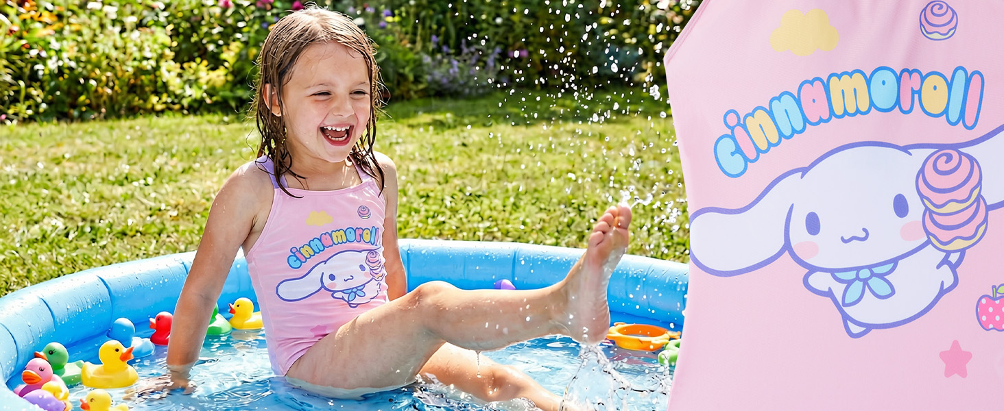 Make swim days more exciting with these character one-piece swimsuits designed for easy wear. Featuring Hello Kitty, Kuromi and Cinnamoroll prints, each piece fits naturally into seasonal big and little girl bathing suit selections for ages 5 to 14, helping children feel confident and ready for swimming pool visits, holidays, and beach adventures. Made from 85% polyester and 15% elastane, the stretch construction supports natural movement while the full lining adds dependable coverage. Parents looking for girls one piece swimsuit or practical clothes for travel and summer activities will find these swim suit for girls designs suitable for regular swim routines, water parks, and family vacations. The pullover structure allows faster dressing, making preparation easier before water activities, and can be suitable as a girls' sports & recreation one-piece swimwear. Parents and families often look for meaningful girls gifts set, offering character appeal combined with everyday swim functionality. They provide a practical and exciting kawaii gifts option for children who enjoy character-themed clothing. These kids swimsuits for girls help complete seasonal wardrobes while preparing children for outdoor activities, swimming sessions, and travel plans. Across all available sizes, they offer dependable comfort and character appeal for water activities throughout the year.