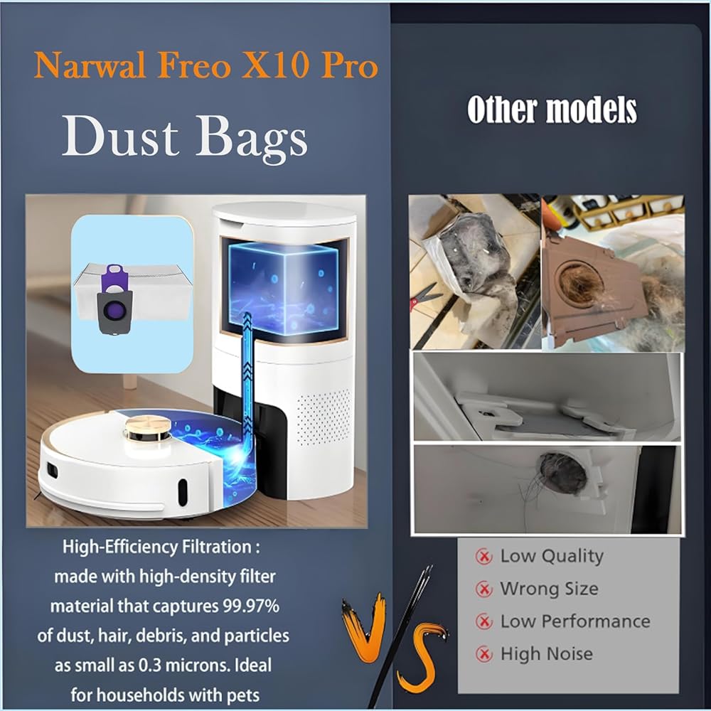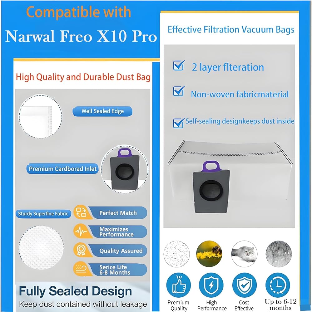 • Perfect Compatibility: Replacement Dust Bags for Narwal Freo X10 Pro Robot Vacuum Cleaner, Spare Parts Accessories