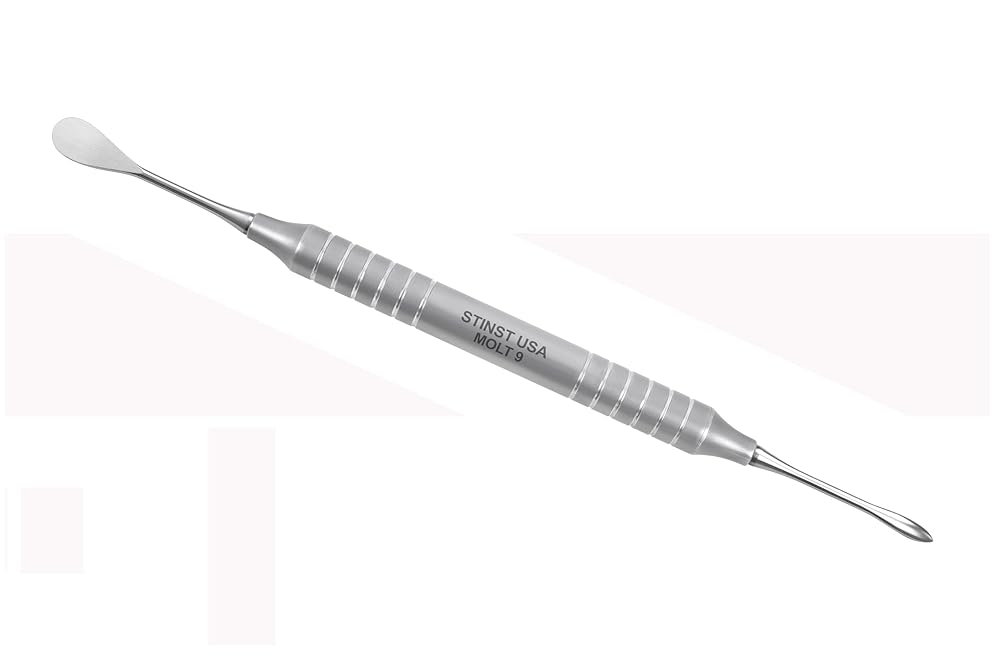 The Molt 9 periosteal elevator is used to separate soft tissue from tooth or bone and to gently hold tissue away from the surgical site during oral surgery and implant procedures.