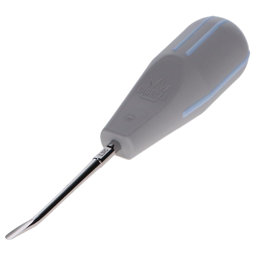 Luxator Periotomes - 3 mm Inverted Curved Blade, Light Blue Stripes. Indicated for General use Lingual and/or Distal, Luxator Instruments are used by cutting and rocking instead of traditional elevating, resulting in a clean extraction with little tissue damage and less postoperative bleeding and pain. Luxator is NOT an elevator. Can be sterilized by autoclave, dry heat or chemiclave.