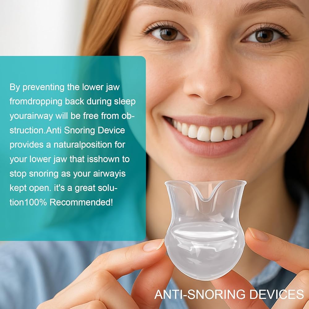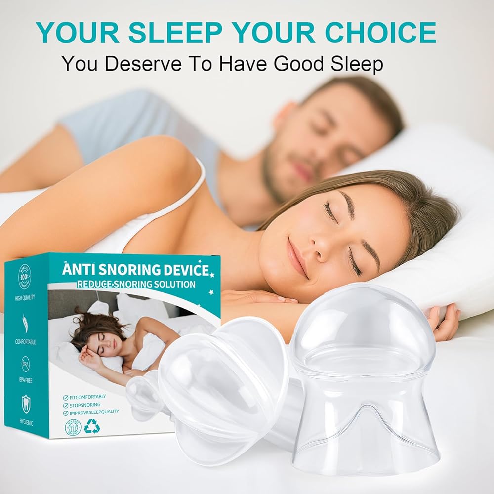 Snore Solution: This snoring device offers a straight for ward solution by gently holding your tongue in a forward position, effectively keeping your upper airways open and reducing snoring.