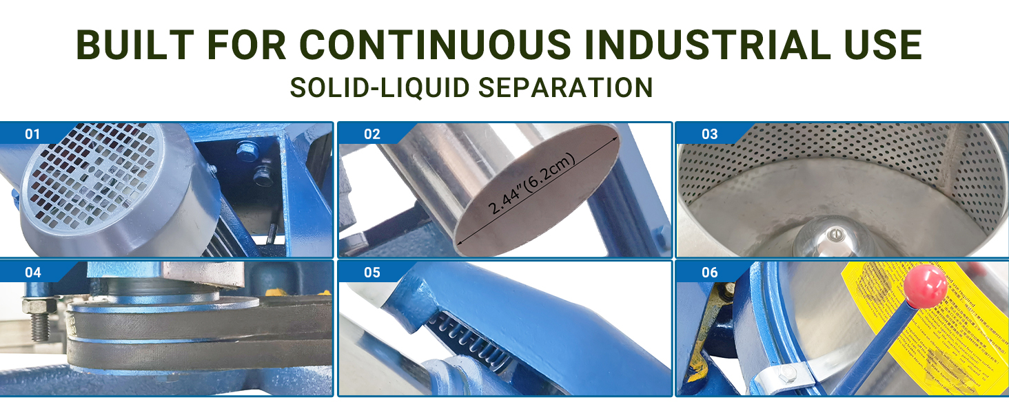 Low Noise, Energy-Saving & High Processing Efficiency: The main shaft is crafted from high-quality steel with dual bearings and a thrust ball bearing support, reducing wear and cutting power consumption. With 960rpm drum speed and low-noise operation, this solid-liquid separator boosts work efficiency while maintaining a quiet working environment