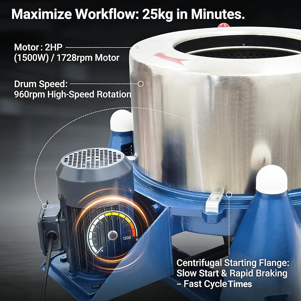 Multi-Scene High-Efficiency Dehydration & Degreasing: This industrial centrifugal dehydrator dryer is built for versatile use, ideal for textiles, clothing, feathers, food, hardware, raw materials, and lab biomass processing. It excels at solid-liquid separation, oil extraction, and degreasing for metal parts, iron/copper/aluminum filings, delivering consistent industrial-grade dehydration results