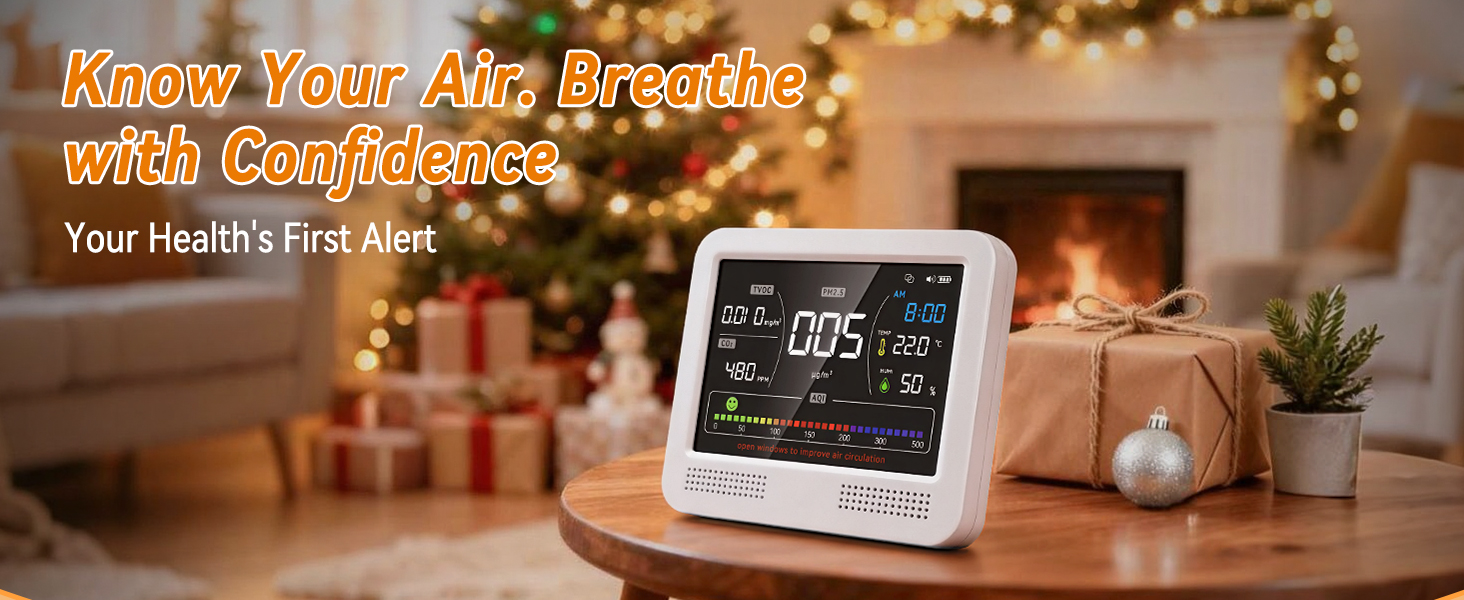 Accurate CO2 & PM2.5 Monitoring for Healthier Air: CO2 and PM2.5 are two of the most important indicators of indoor air quality. This air quality tester provides real-time readings so you can quickly understand air conditions in bedrooms, offices, nurseries and classrooms