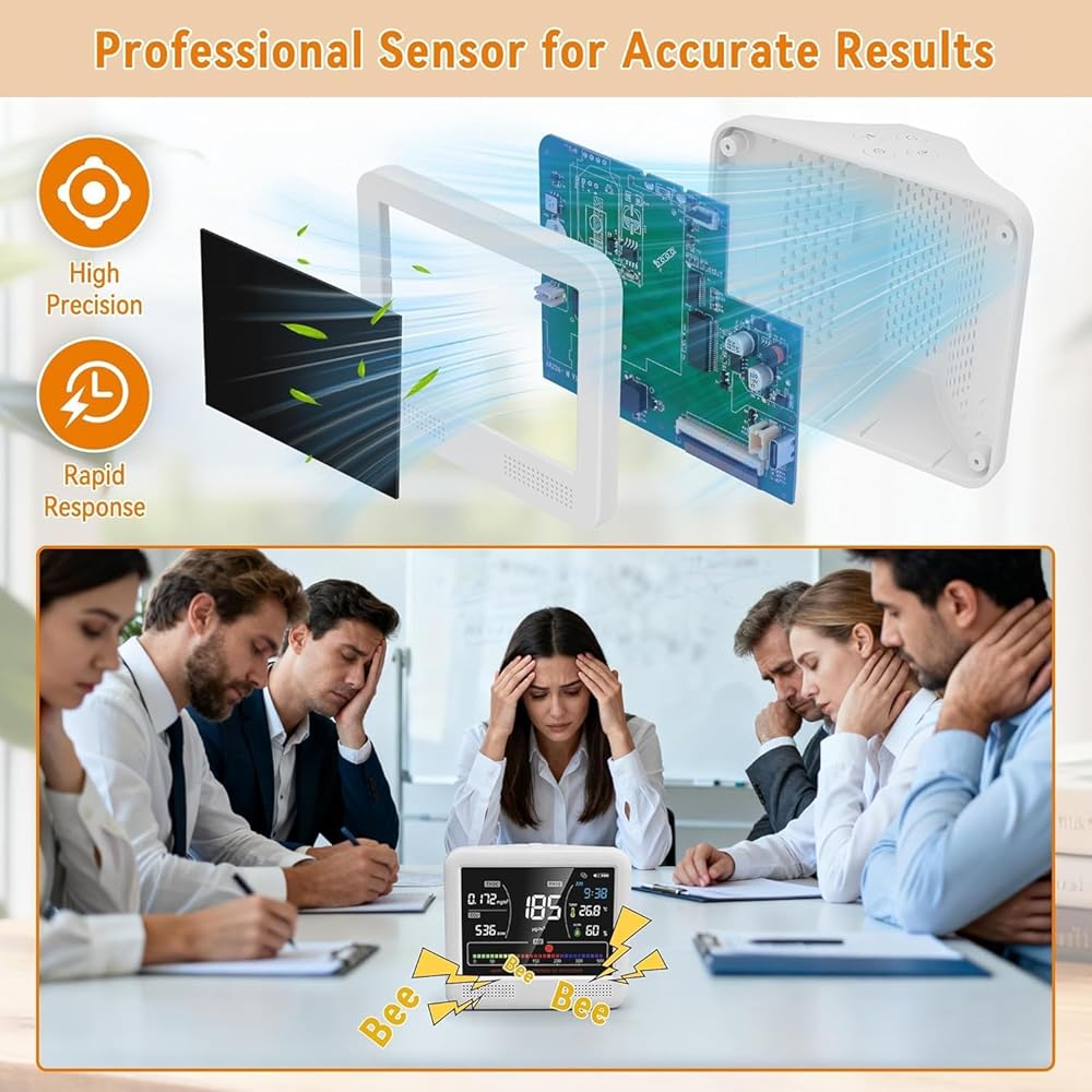 16-in-1 Indoor Air Quality Monitor for Complete Air Detection: This 16-in-1 indoor air quality monitor tracks CO2, PM1.0, PM2.5, PM10, HCHO, TVOC, temperature and humidity in real time. Easily monitor indoor pollution levels and create a healthier environment for your home and family