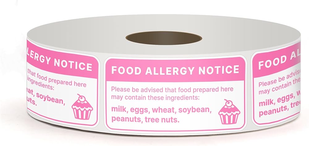 - Pink Cute Food Allergy Stickers Waterproof for Bakery, Cake.