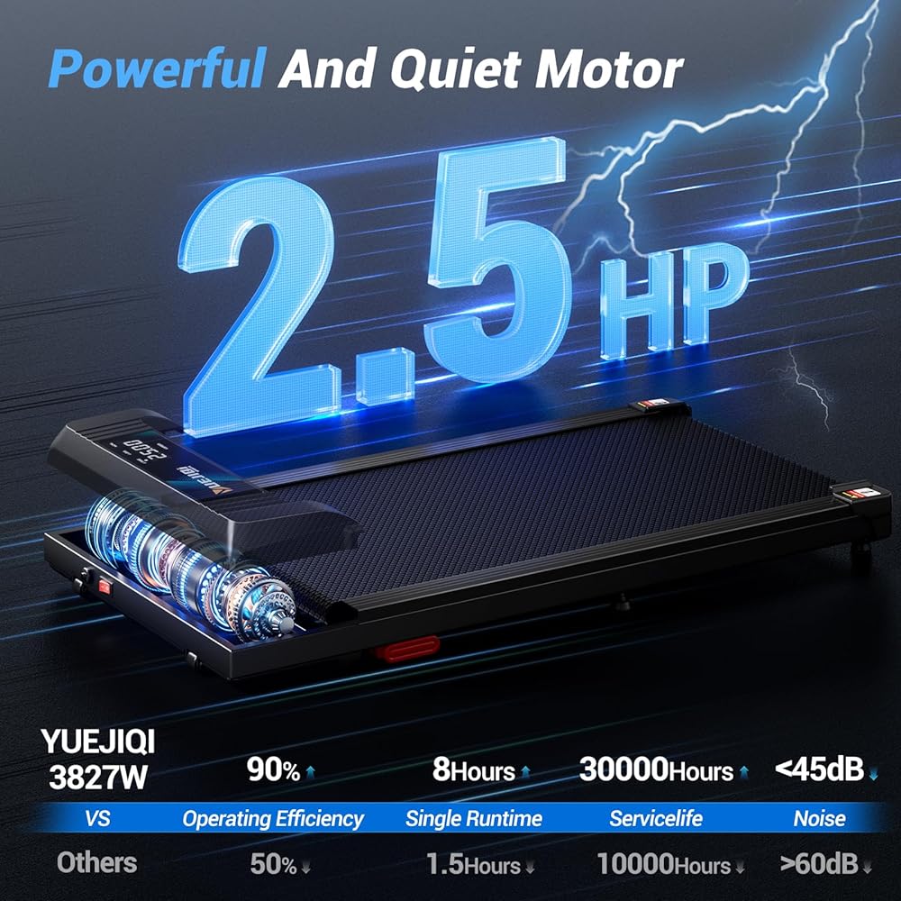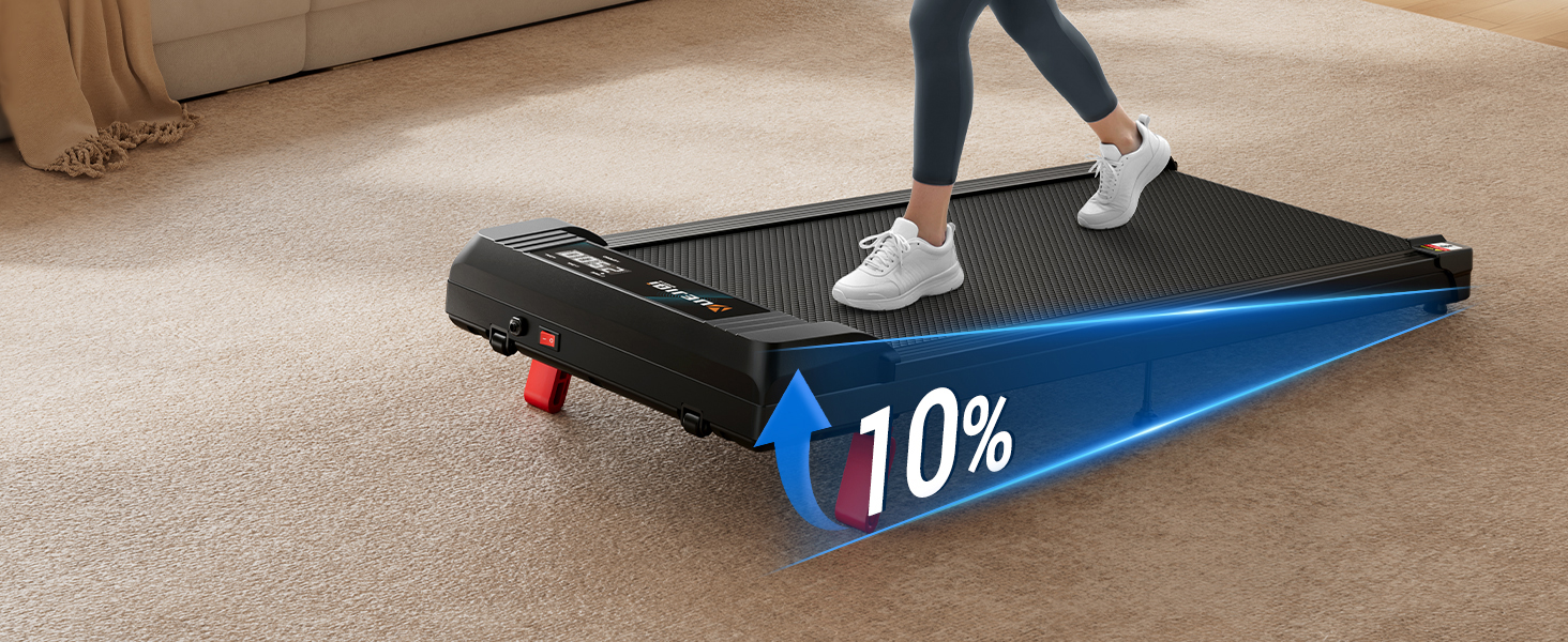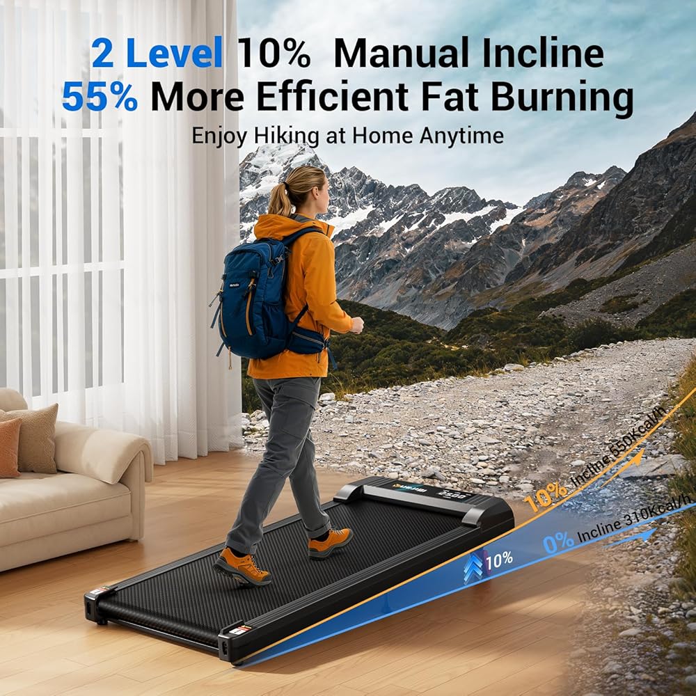 INCLINE WALKING PAD: Experience enhanced calorie burning with the YUEJIQI walking pad, which features a 10% adjustable incline to boost fat-burning efficiency by up to 50%. Designed to simulate natural climbing motions, this trainer allows you to adjust speeds from 0.5 to 4.0 mph. Engineered for quiet and consistent performance, it seamlessly integrates into both home and office settings, ensuring uninterrupted workouts