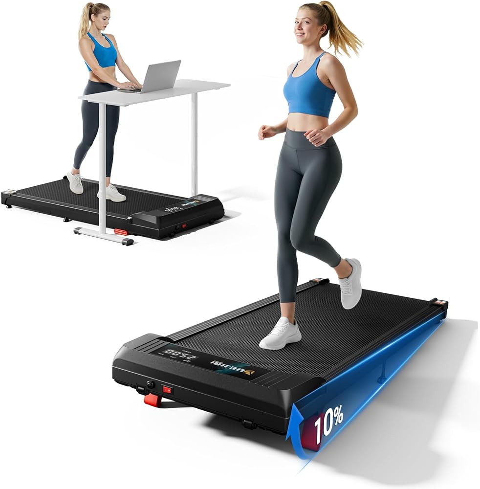 LED DISPLAY & REMOTE CONTROL: Desk treadmill equipped with a clear LED screen, this small treadmill tracks and displays key workout metrics including speed, distance, time, and calories burned. The included magnetic remote control lets you effortlessly adjust speed settings from a distance, allowing you to maintain your workflow while staying active throughout the day