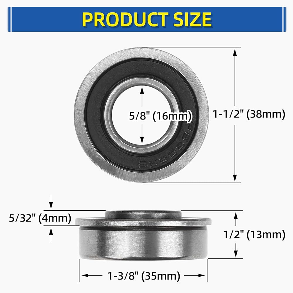 Precision Dimensions – 5/8 inch ID, 1-3/8 inch (35 mm) OD, and 1-29/64 inch (37 mm) flange OD ensure a tight, stable fit with standard hubs