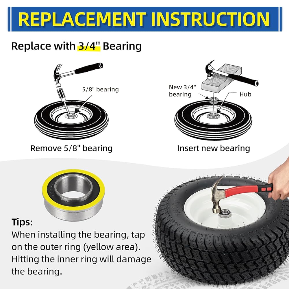 1. Upgrade your equipment with this 5/8" bearing kit for reliability and performance. Each pack includes four high-quality bearings made from bearing-grade steel. 2. These bearings fit standard 5/8" axles and are ideal for lawn mowers, wheelbarrows, and garden wagons.