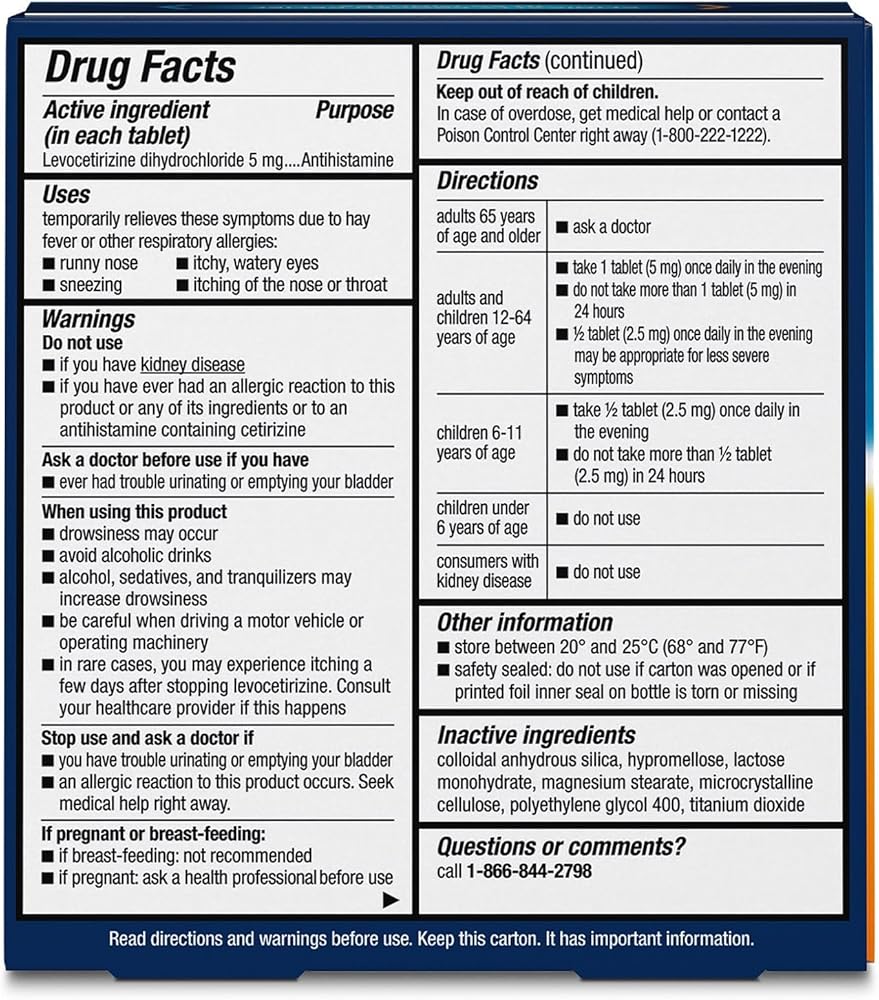 CONTAINS: One (1) 90-count bottle of Xyzal 24 Hour Allergy Relief Medicine, Original Prescription Strength Antihistamine, Levocetirizine Dihydrochloride Tablets, 5 mg