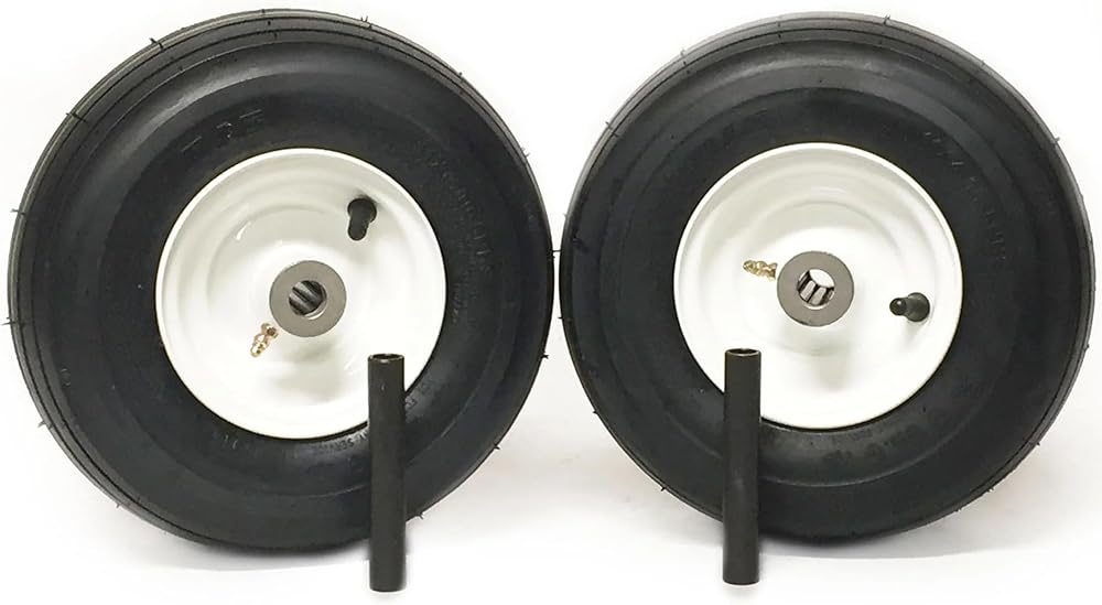 MowerPartsGroup (2) Pneumatic Tire Assemblies 11x4.00-5 Universal Ribbed Zero Turn 3/4" Bearings