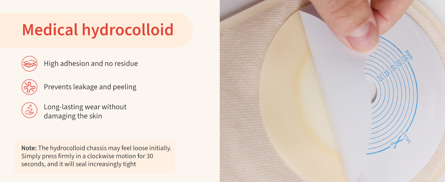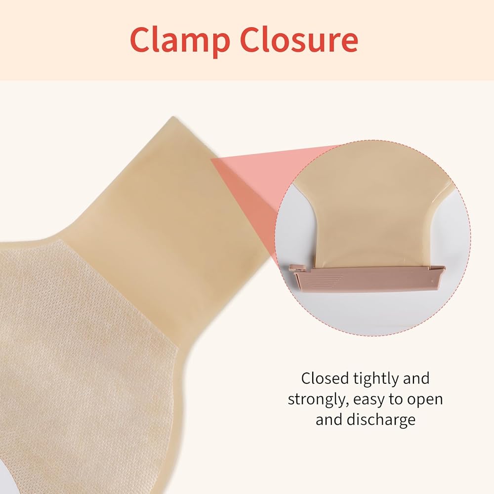 Skin-Friendly & Reusable: Our ostomy bags are made of medical-grade hydrocolloid, which is hypoallergenic and gentle on the skin, ensuring a secure, leak-proof fit. They leave no adhesive residue when removed, providing all-day comfort. The high-quality clip closure is reusable, easy to open and close, leak-resistant, and simple to clean