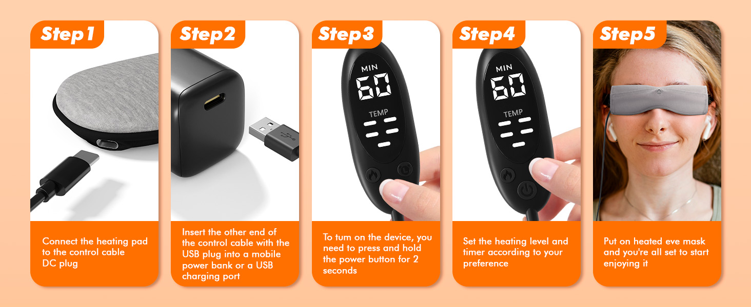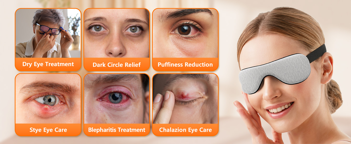 Customizable heat therapy – Designed with 5 temperature levels from 104 to 140℉ to deliver consistent warmth that helps relieve dry eyes, styes, chalazion, dark circles and puffiness.