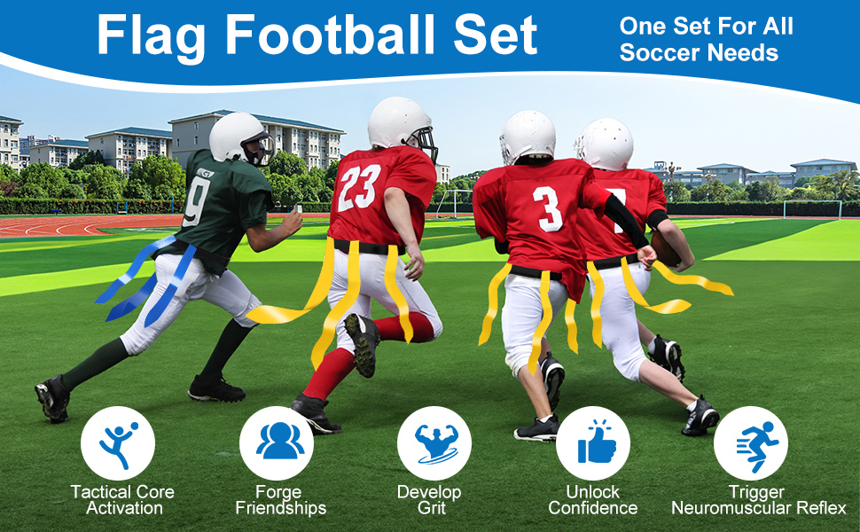 ELEVATE YOUR GAME TODAY: Elevate your flag football experience with our reliable flag football flags and belts, essential for every player looking to improve their skills in training or competitive games