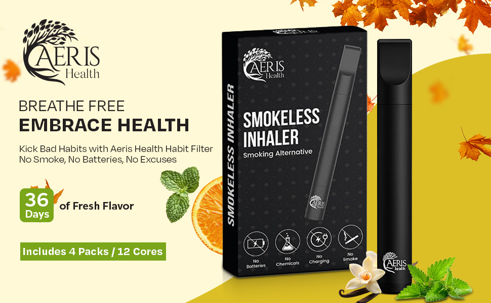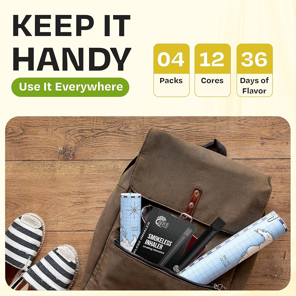 Smokeless Inhaler | Flavored Air Device with 12 Plant-Based Cores | Mint & Spearmint | 36 Days of Scent | Portable, Reusable & Non-Electric | Simple Fresh Air Stop Smoking Aid