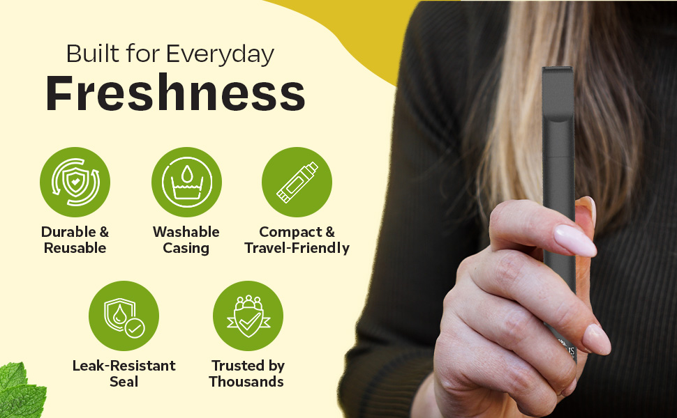 Compact & Reusable: Durable, washable casing with a leak-resistant seal for daily use anywhere — home, work, or travel.