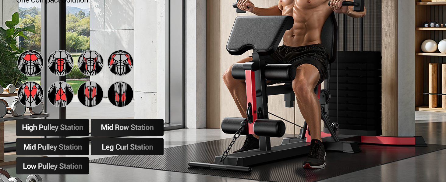 Full-Body Training:This home gym system delivers the versatile, multifunctional workout experience you'd expect from a commercial gym. It targets your chest, back, arms, abs, and legs, engaging primary, secondary, and stabilizer muscles for improved full-body coordination. Enjoy a complete, effective total-body workout in the comfort of your home