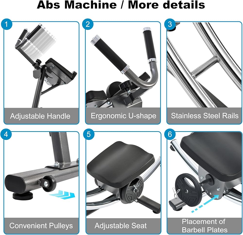 Adjustable Design: The adjustable handles help you find the most comfortable arm length. The ab workout equipment also offers a multi-angle adjustable seat and a loading column for adding additional weights. You can enhance the intensity by adding Olympic weights to the machine! With simple assembly and detailed instructions, you can set it up in under 10 minutes.