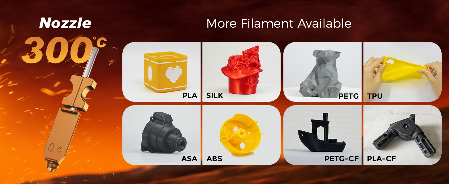 High Temp. Up to 300˚C high temperature makes more printing filament type possible.