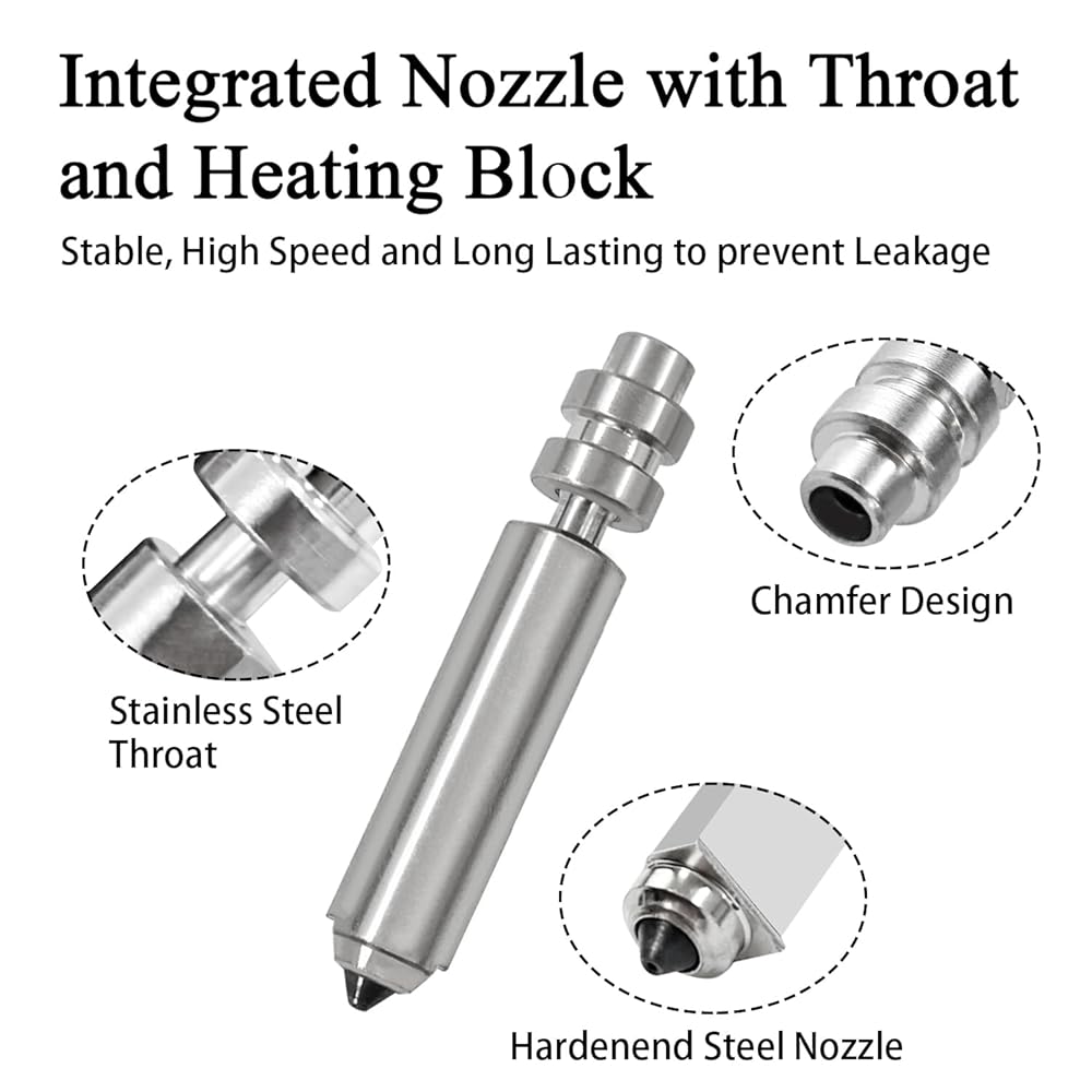 HzdaDeve Heating Assembly Kit and 2PK 0.4MM Integrated Hardened Steel Nozzles for Kobra X Combo High Speed Nozzle Ceramic Zirconia Heat Insulation Block Heating Component Heat-Insulating Base Clip