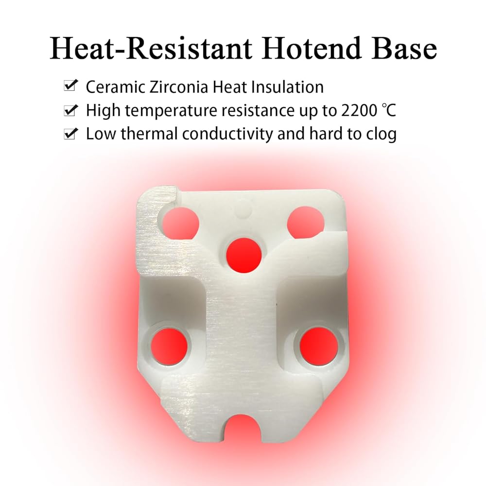Hotend Base: Ceramic Zirconia Heat Insulation, with a heat resistance of up to 2200°C