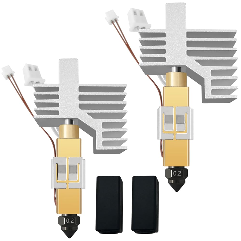 2PK 0.2MM CC2 Hardened Steel Ceramic Hotend for Centauri Carbon 2/CC2 Print Head Extruder Kit Hot End Heater Cartridge Silicone Cover Heating Block Accessory Replacement for Elegoo 3D Printer