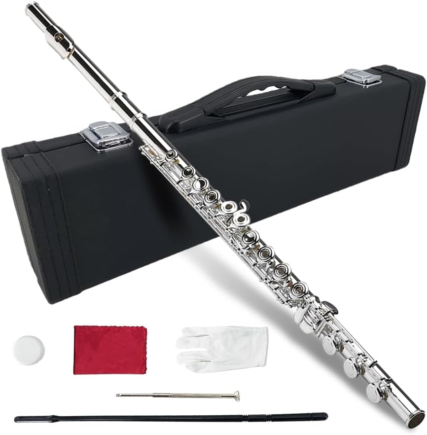Closed Hole 17 Keys C Flute for Beginners & Students & Adults– Nickel Siver Flute with Hard Case, Cleaning Kit, Tuning Rod – Easy to Play, Durable & Lightweight
