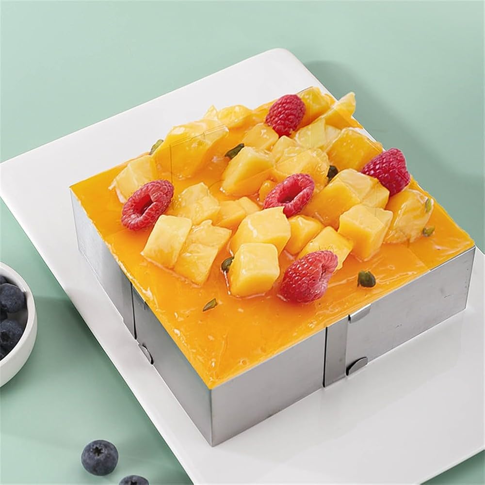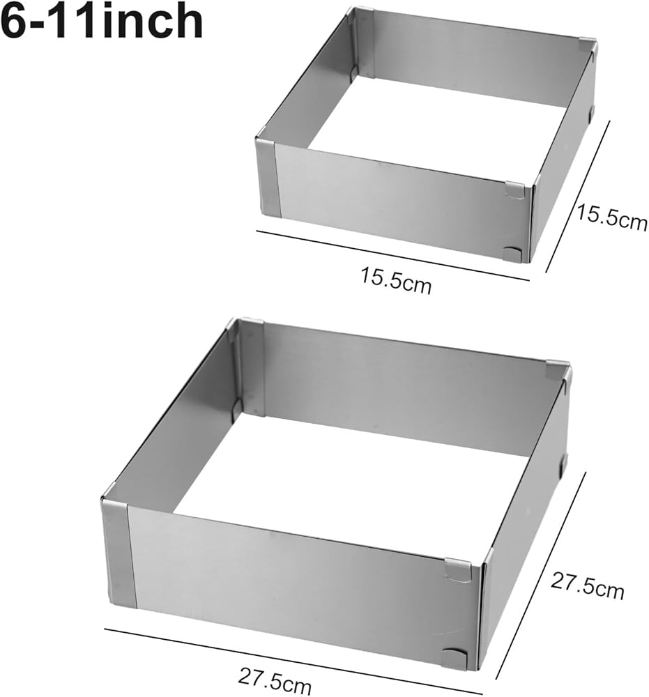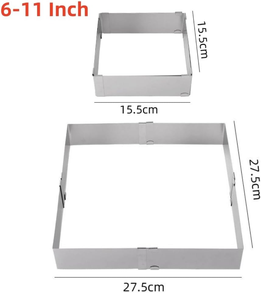 Adjustable for Stainless Steel Mousse for Ring Square Cake Decorating, 4-6 to 11 Inch, 5cm Height, Home Baking Mousse and Tiramisu Cakes