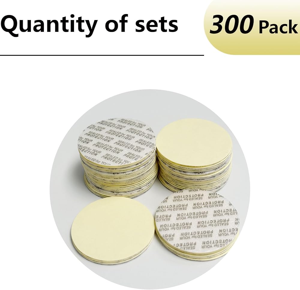 38mm Pressure Sensitive Seal, 300 Pack Adhesive PS Foam Lid Cap Liners with Dustproof Paper Back, Tamper Resistant for Plastic Glass Jar Bottle Cap Seals (38mm/1.5")